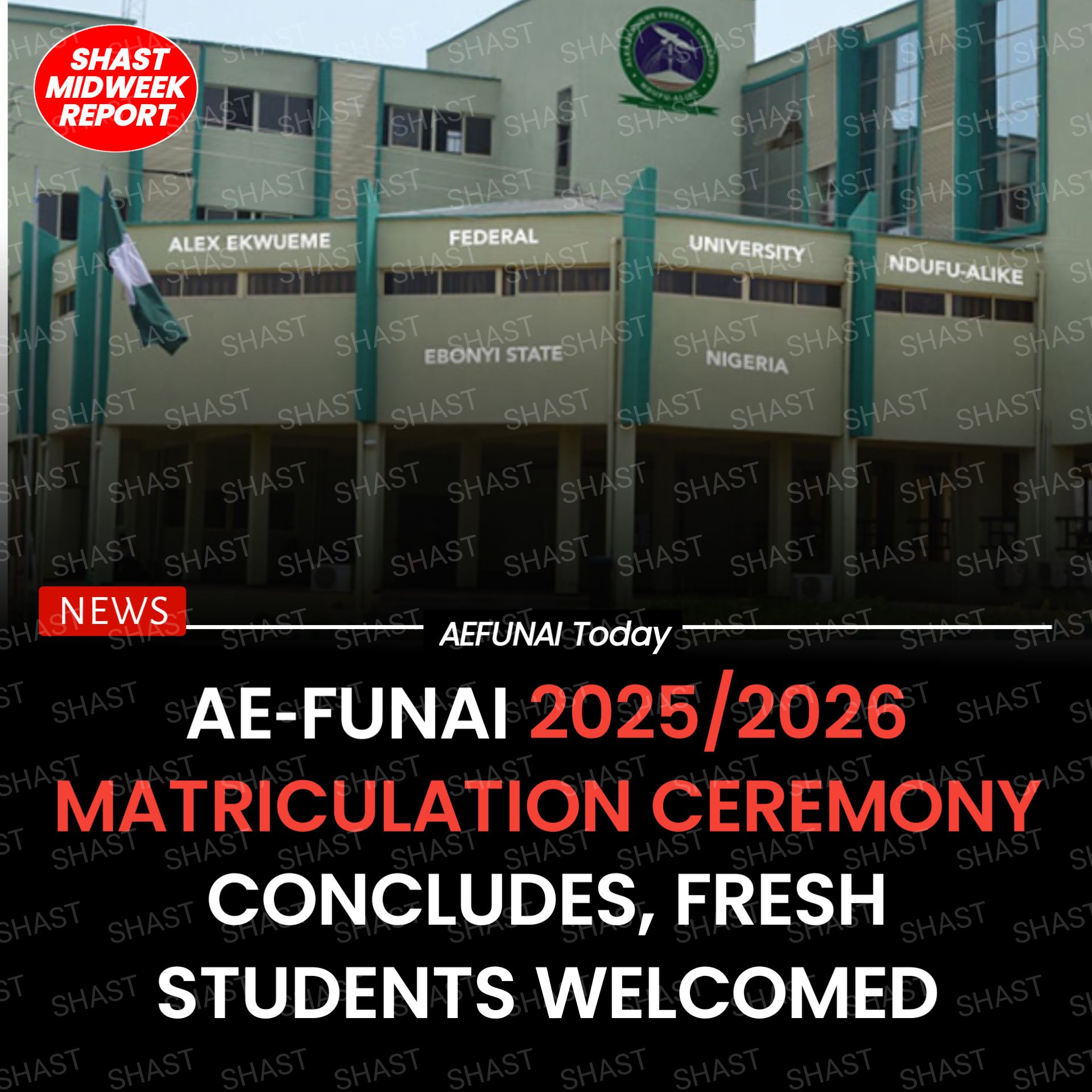 The Alex Ekwueme Federal University Ndufu‑Alike Ikwo (AE‑FUNAI) held its 2025/2026 matriculation ceremony today, formally inducting newly admitted students into the university.
