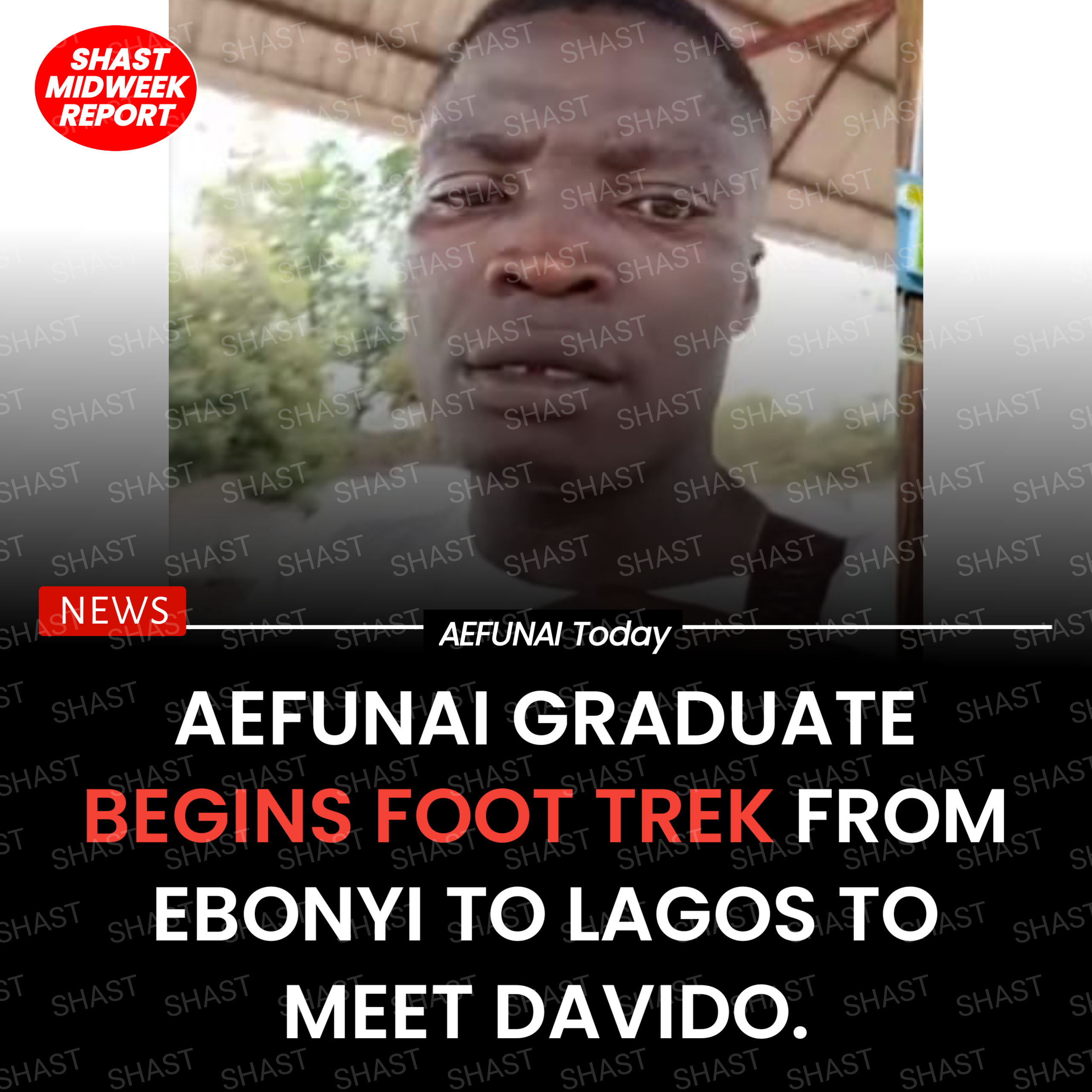 AEFUNAI GRADUATE BEGINS FOOT TREK FROM EBONYI TO LAGOS TO MEET DAVIDO