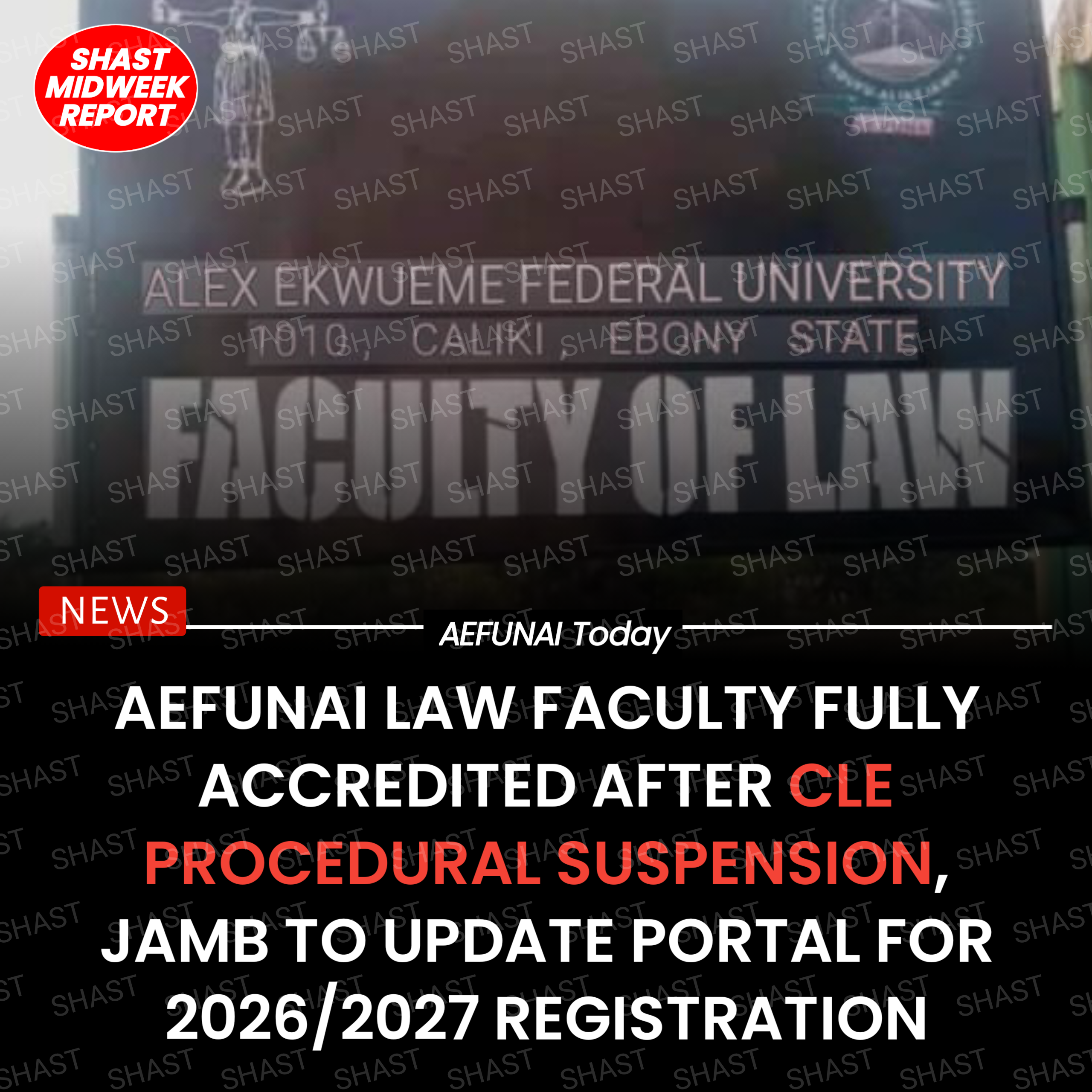 The Faculty of Law at Alex Ekwueme Federal University, Ndufu-Alike (AEFUNAI), which was suspended from admissions in the 2025/2026 session due to a procedural issue with the Council of Legal Education (CLE), has now met all requirements and is fully accredited.